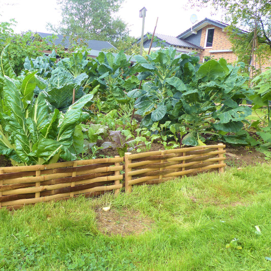 Beeteinfassung aus Querleisten mit hellem Bambus