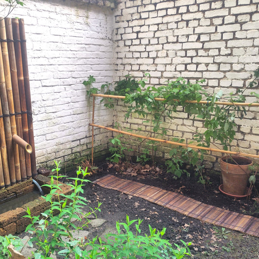 Bambusständer Tripod aus Bambusrohren mit Kokosfaserbindung